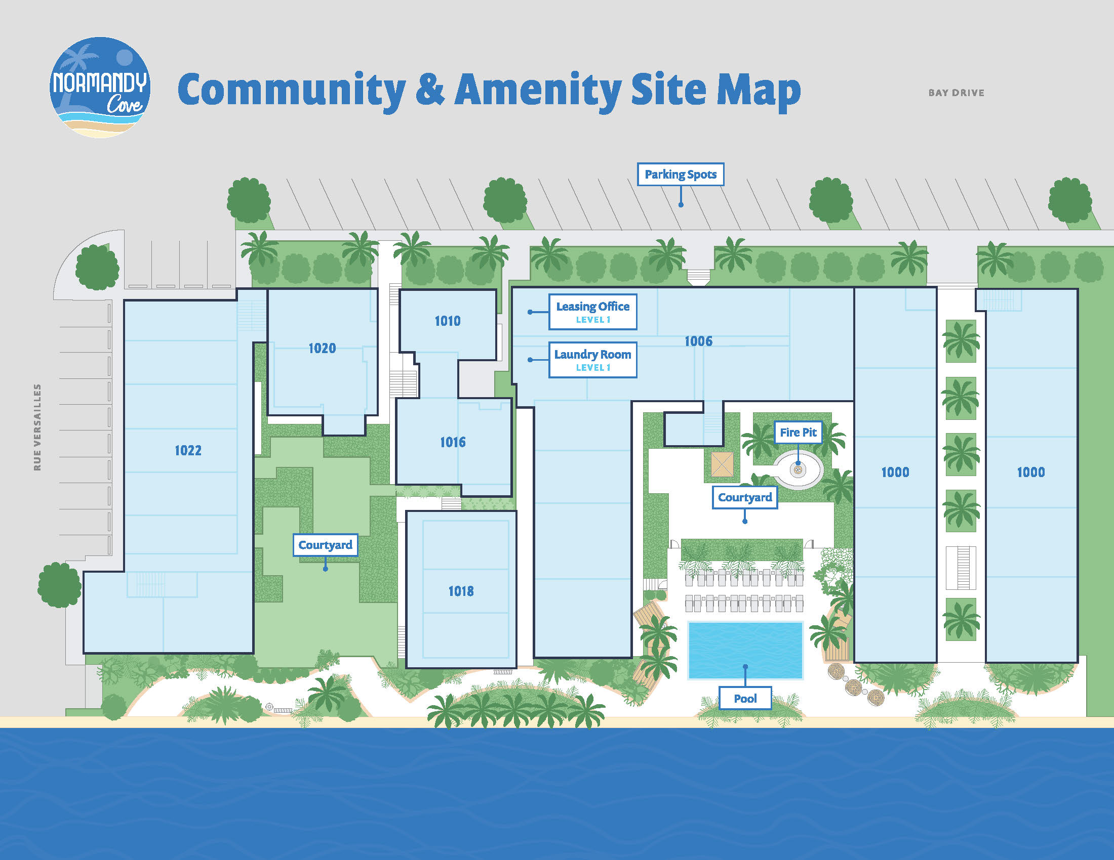 At Normandy Cove outdoor spaces have been thoughtfully redesigned to offer our residents a resort-style experience, inspired by the boutique hotels of Miami Beach. From our waterfront pool and courtyard to the spectacular bay views, there's no better place to call home.